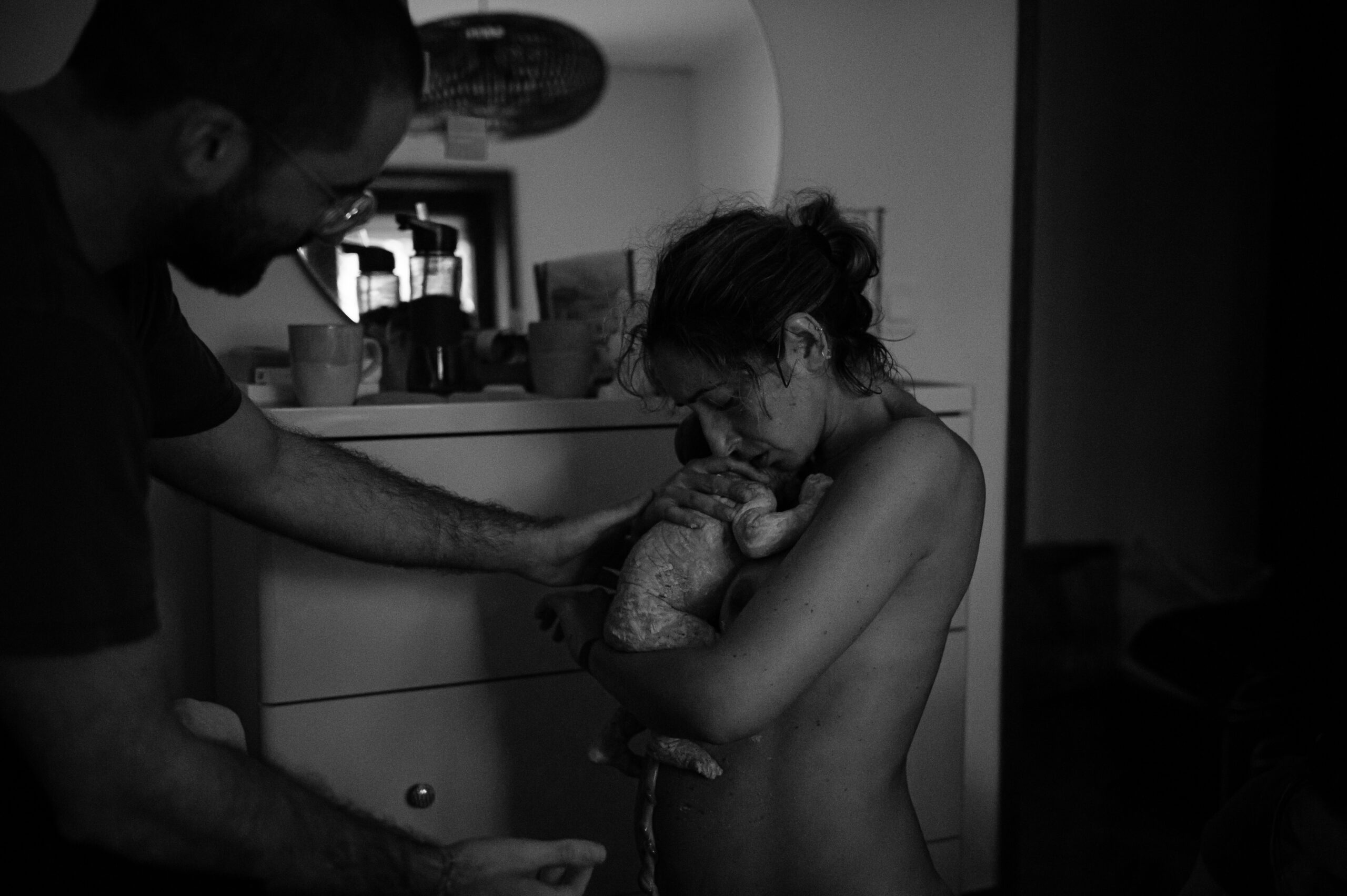 Já no outro dia de manhã, com mais de 24h desde o inicio do trabalho de parto, senti-me a perder a esperança, não sabia o que se passava, o meu corpo não estava a querer avançar. A possibilidade de ir para o hospital assombrava-me, queria continuar no meu ninho, onde me sentia tão bem. Abordamos essa possibilidade e decidimos tentar só mais um pouco. Não havia risco, o bebé estava bem e a bolsa intacta, o que me permitiu poder esperar.